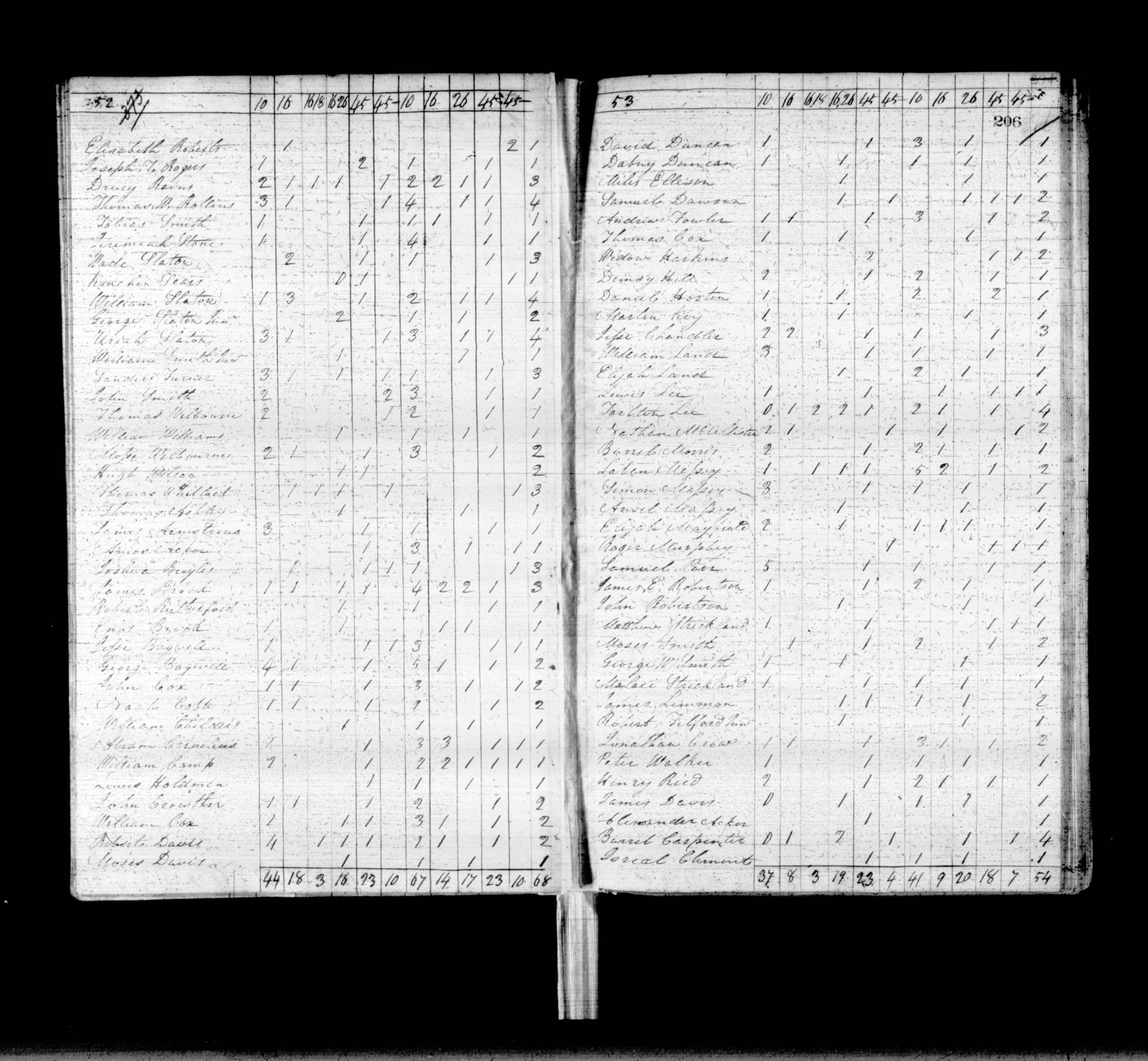 Page 132 - William P. Reed 20/30 wife 20/30,males 1 under 5 + females 1 under 5 (Joseph Allen Sr daughter?)